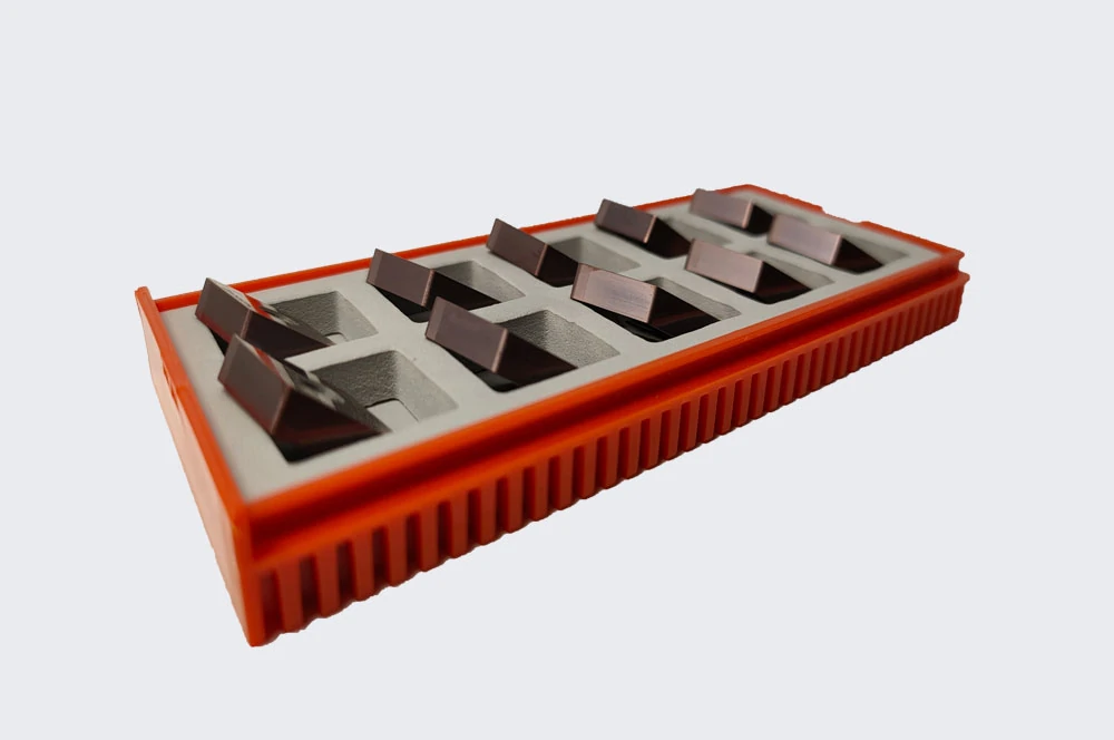 Coated PCBN inserts use CVD (vapor deposition method) to coat a layer of wear-resistant and high-temperature-resistant film on the surface of the inserts, thereby improving tool wear resistance and heat resistance.